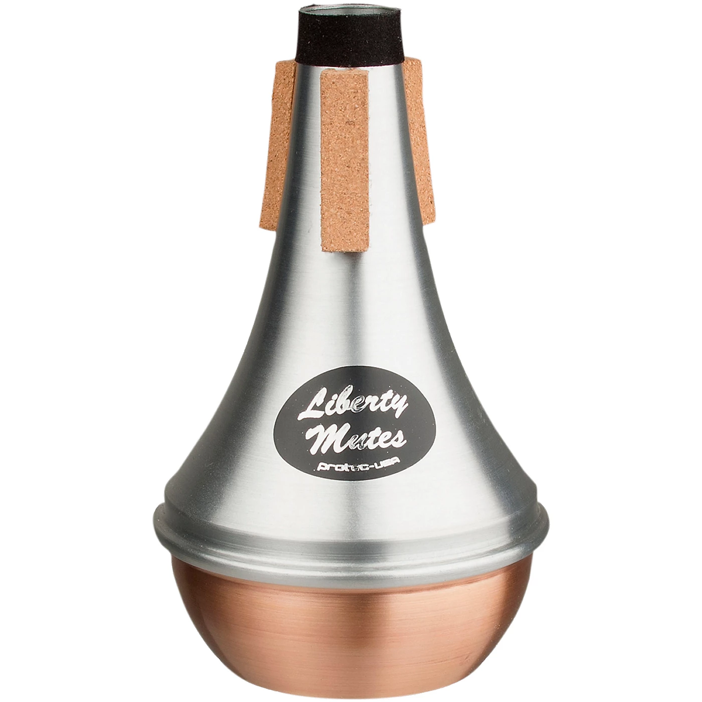 Liberty aluminum mutes are known for their high quality craftsmanship and materials, excellent playability, while being value priced. Straight Liberty Aluminum mutes produce a rich full open sound and do not distort pitch. This model has a copper bottom, which provides a somewhat warmer tone than the all aluminum version.Exterior FeaturesHigh-quality material and constructionLong-lasting corkFree-blowing and well-balancedValue-priced