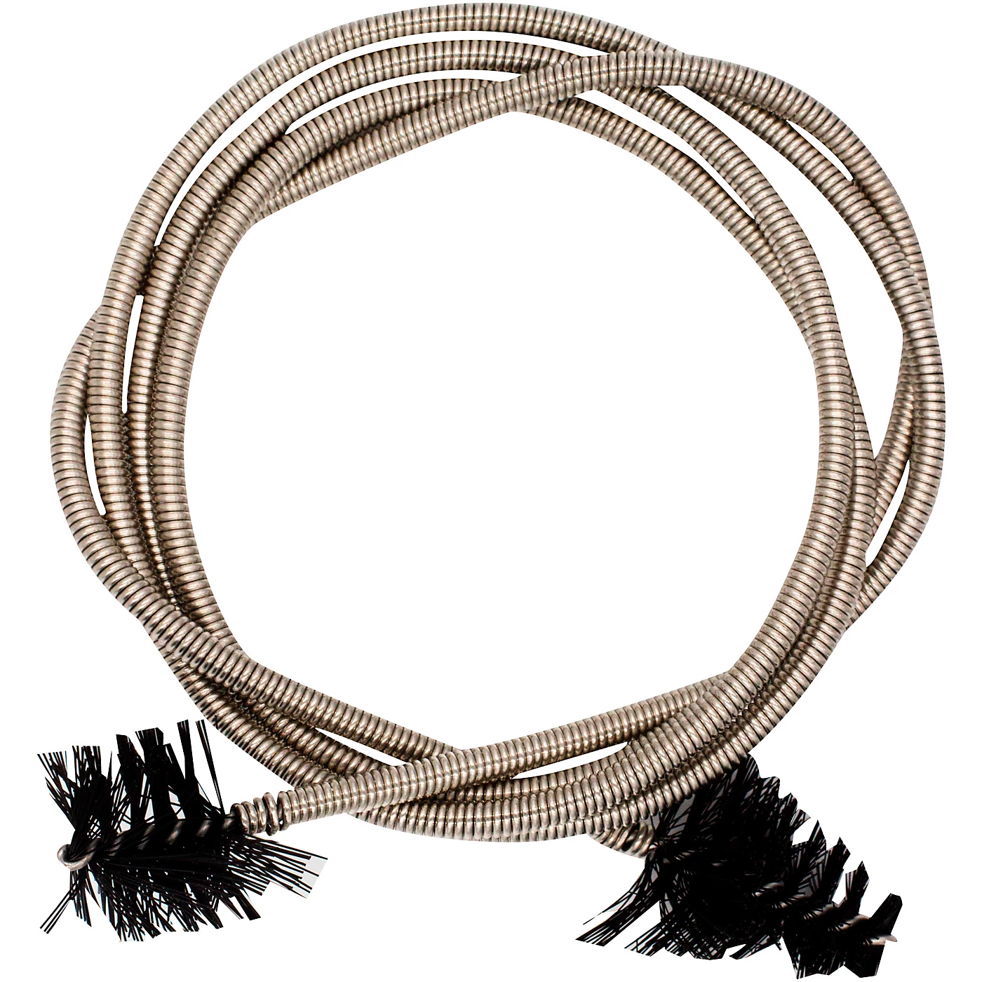 Flexible coiled wire with bristle brushes coated in vinyl plastic to protect your instrument.